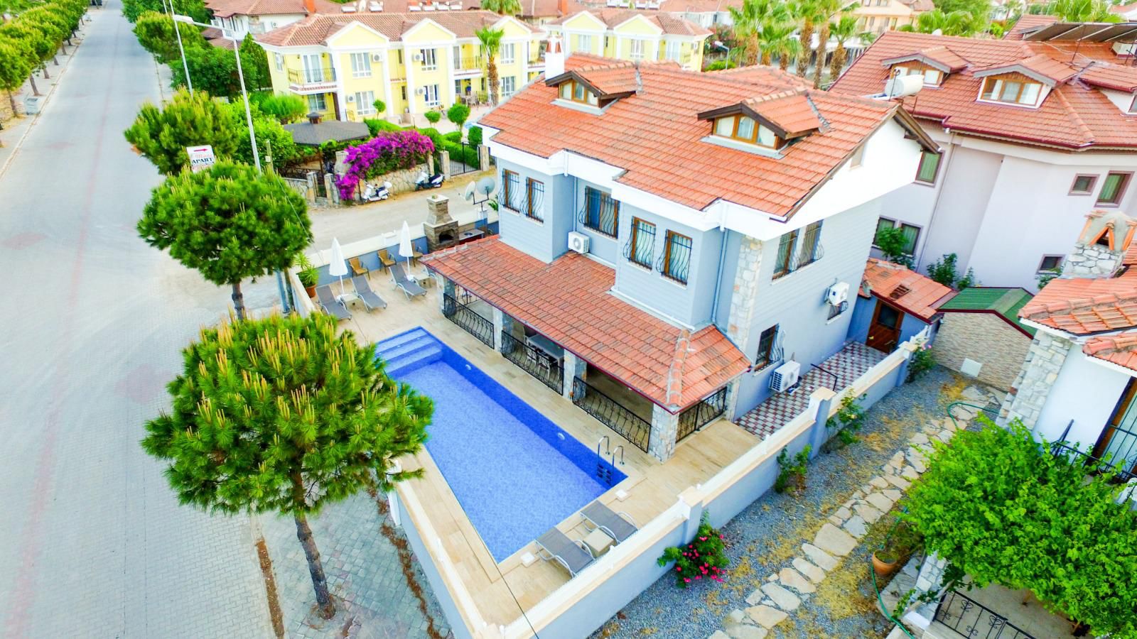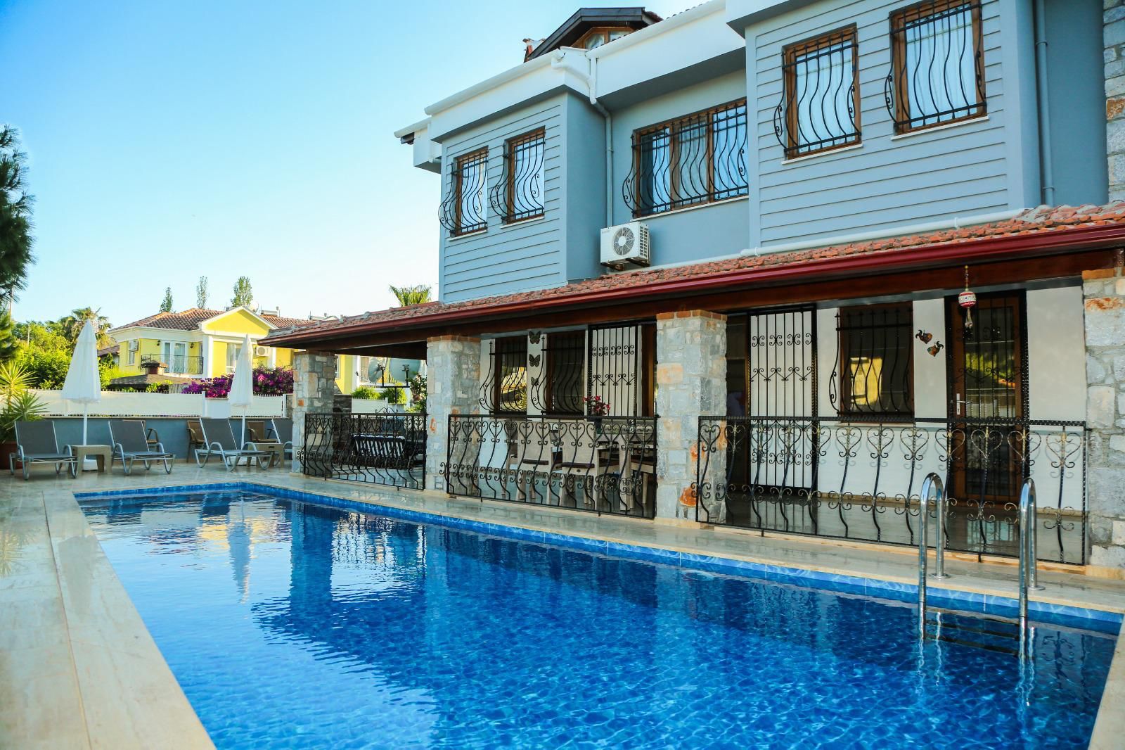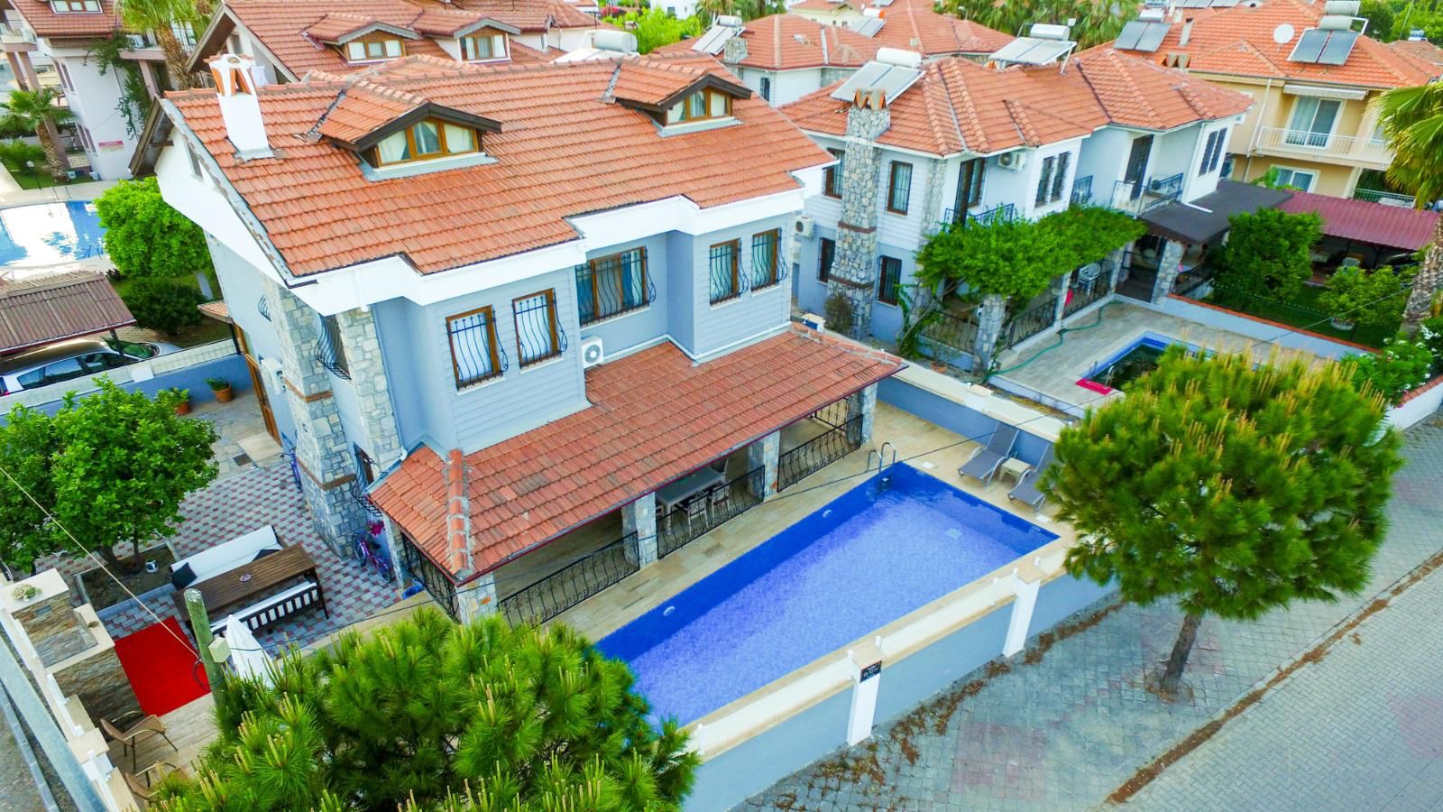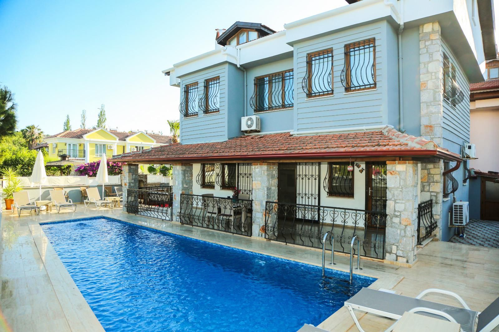 Şehrin karmaşasından uzak, huzur dolu bir tatil deneyimi için tasarlanmış olan bu zarif villa, 4 yatak odası ve 3 banyosuyla sizlere evinizin rahatlığını sunmaktadır. Misafirlerini ağırlamak ve rahatlamak için mükemmel bir mekan sunan bu villa, 10 kişilik konuk kapasitesiyle geniş bir arkadaş grubu veya aile tatili için ideal bir tercihtir. Her yatak odası özel banyo ile donatılmıştır. Villamızın en çekici özelliklerinden biri de büyük bahçesi ve açık alanlarıdır. Ayrıca, barbekü alanımız sayesinde lezzetli yemekler hazırlayabilir ve özel anlarınızı paylaşabilirsiniz. Villamızın merkeze olan 400 metrelik yakınlığı, hem şehir hayatının olanaklarına ulaşabilmenizi sağlar hem de tatilinizin sakinliğini korur.