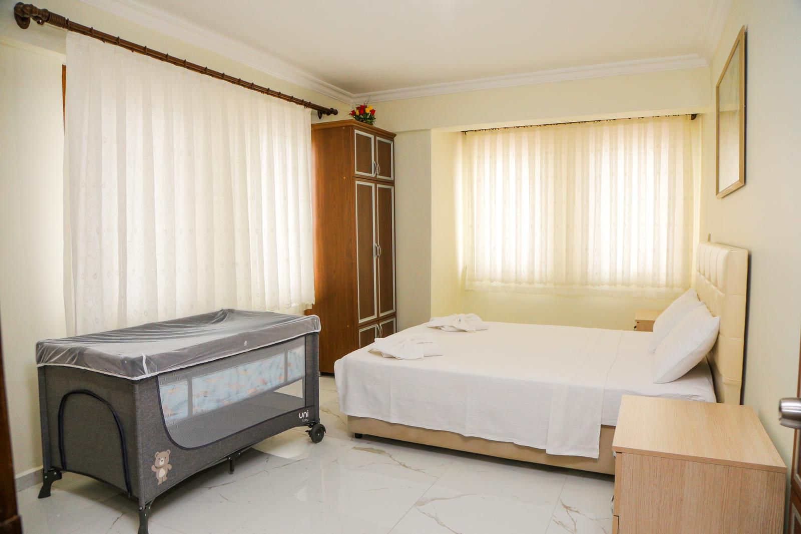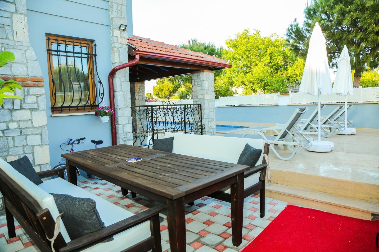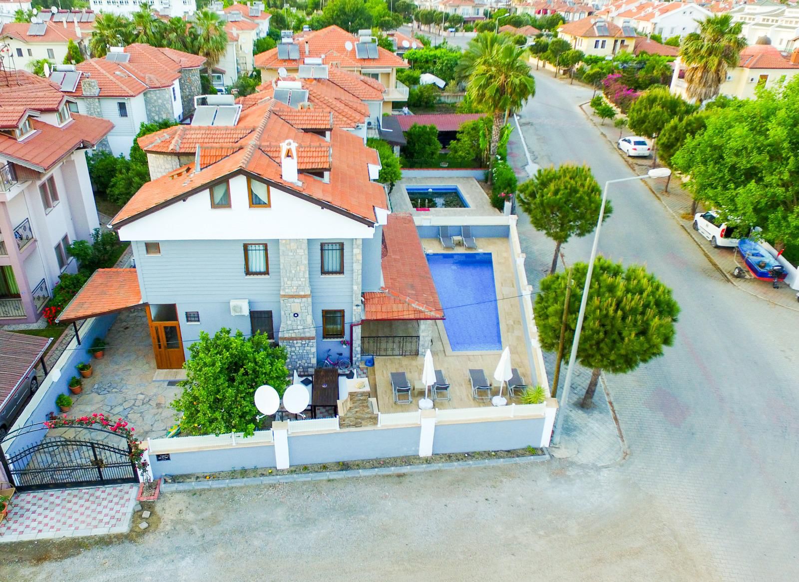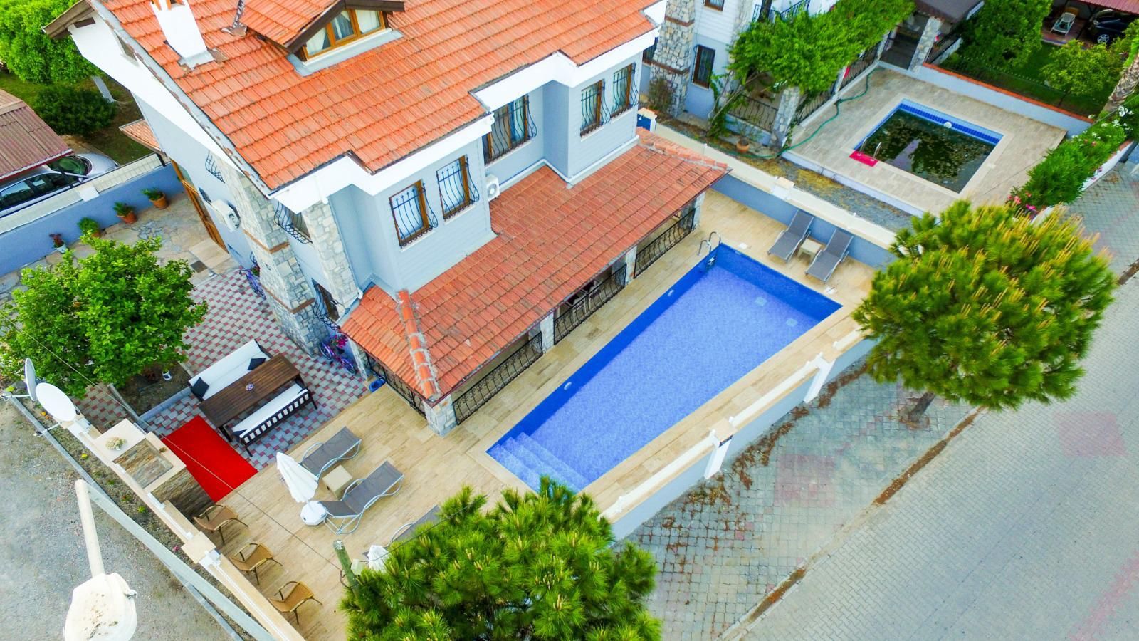 Şehrin karmaşasından uzak, huzur dolu bir tatil deneyimi için tasarlanmış olan bu zarif villa, 4 yatak odası ve 3 banyosuyla sizlere evinizin rahatlığını sunmaktadır. Misafirlerini ağırlamak ve rahatlamak için mükemmel bir mekan sunan bu villa, 10 kişilik konuk kapasitesiyle geniş bir arkadaş grubu veya aile tatili için ideal bir tercihtir. Her yatak odası özel banyo ile donatılmıştır. Villamızın en çekici özelliklerinden biri de büyük bahçesi ve açık alanlarıdır. Ayrıca, barbekü alanımız sayesinde lezzetli yemekler hazırlayabilir ve özel anlarınızı paylaşabilirsiniz. Villamızın merkeze olan 400 metrelik yakınlığı, hem şehir hayatının olanaklarına ulaşabilmenizi sağlar hem de tatilinizin sakinliğini korur.