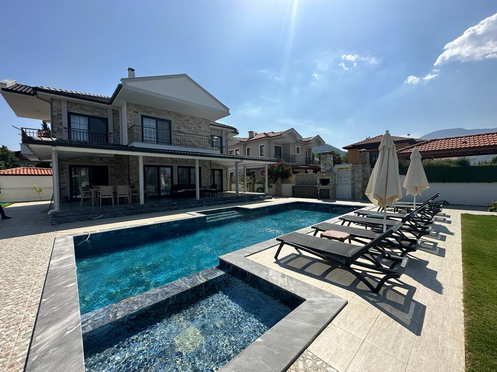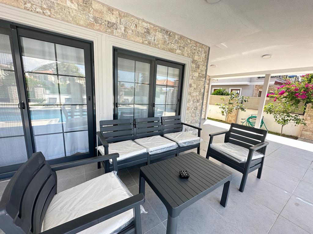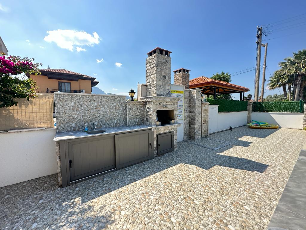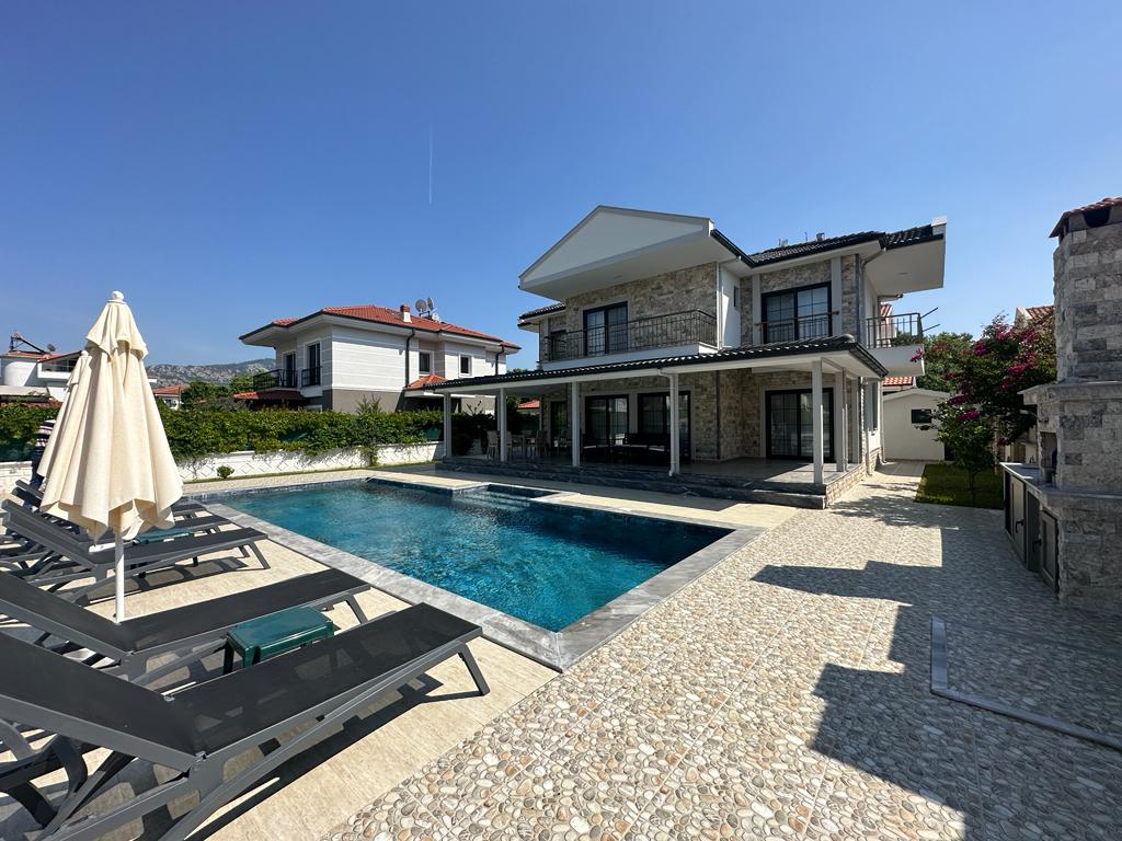 Villa Büşra'nın dikkat çeken bir diğer özelliği ise özel yüzme havuzudur. Serin sularında rahatlayabilir, gün boyu güneşlenebilir ve keyifli anlar yaşayabilirsiniz. Havuzun etrafında yer alan şezlonglar ve oturma alanları, dostlarınızla vakit geçirmeniz için mükemmel bir ortam sağlıyor. Ayrıca, bahçede bulunan barbekü alanıyla açık havada lezzetli yemekler hazırlayabilirsiniz.